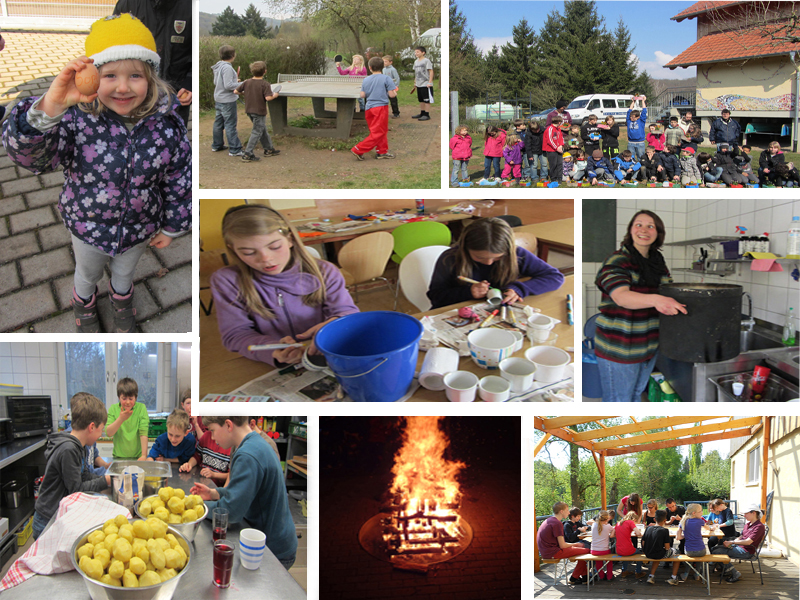 Wir wohnen im eigenen Bootshaus in 55595 Boos mit Wiese direkt an der Nahe. Wir werden basteln, spielen, wandern, gut essen, am Lagerfeuer singen.